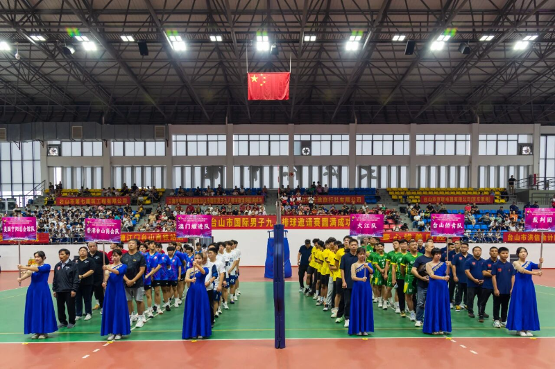 台山市国际男子九人排球邀请赛由台山市人民政府、澳大利亚墨尔本台山同乡会主办,比赛采用积分赛制,美国宁阳总会馆队、香港台山商会队、澳门耀进队、大江队和台山侨青队五支劲旅在周末两天展开多轮角逐。