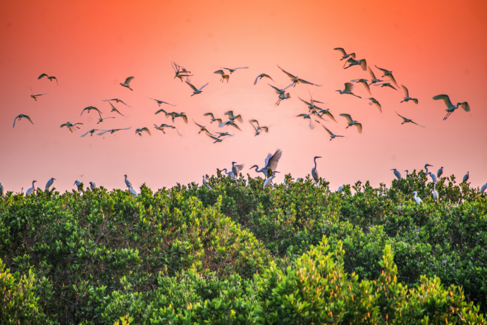 丰富的红树林资源,不仅是天然的生态屏障,可以抵御风浪、净化海水,更是一种强大的“碳汇”资源。红树林是国际公认的三大滨海蓝碳生态系统之一,碳汇能力是森林的10倍,储存期可达数百年,是名副其实的“深海定期存款”。