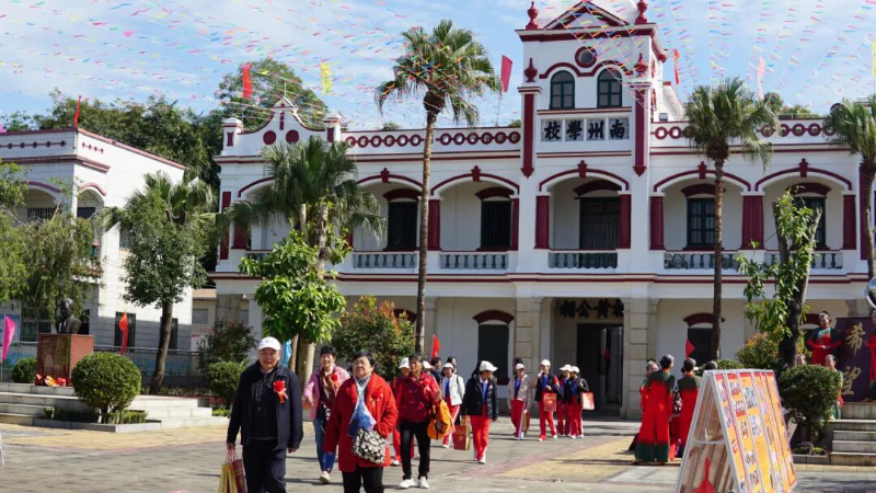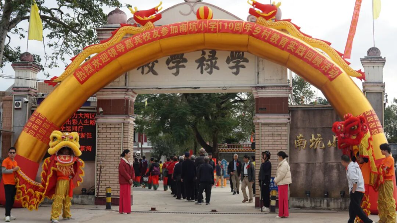 台山市台城南坑小学内 洋溢着喜庆热烈的气氛 这所乡村学校迎来110周年华诞 校园里,各界嘉宾、校友 和师生代表300余人欢聚一堂 共同回顾学校百年办学历史 展望乡村教育发展未来