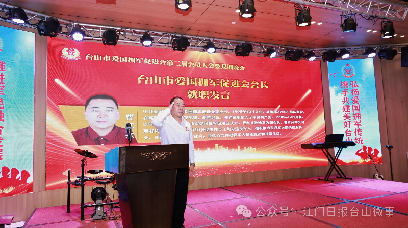 为进一步弘扬爱国拥军光荣传统,凝聚社会力量支持国防和军队建设,12月18日晚,台山市爱国拥军促进会(以下简称“爱促会”)第二届会员大会暨双拥晚会成功举办。江门市、台山市双拥办,台山市退役军人事务局有关负责同志,爱促会全体会员及社会各界代表齐聚一堂,共同见证新一届理事会诞生,续写军民团结新篇章。