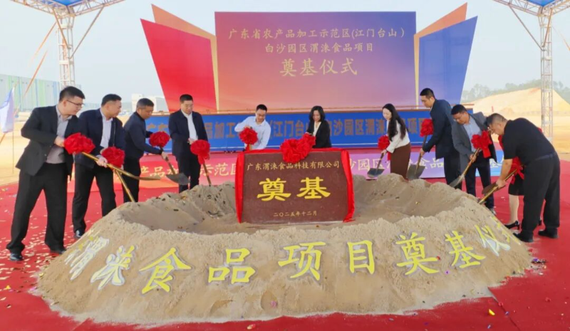 12月22日上午,广东省农产品加工示范区(江门台山)白沙园区内,一派热火朝天的景象。广东渭涞食品科技有限公司(下简称“渭涞食品”)现代化生产基地正式奠基,台山大湾控股发展集团有限公司(下简称“台山大湾集团”)与中信银行江门分行签订战略合作框架协议,台山国弘餐饮集配中心项目同时启动。