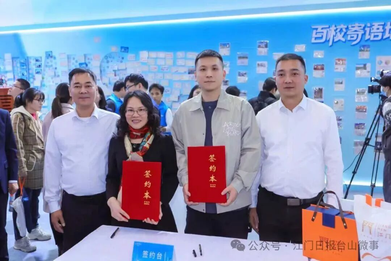 这些充满“侨乡味”的展示,吸引了大量求职者驻足咨询、深入交流,使台山招聘专区成为现场一道亮丽的风景线。政校企协同发力,本次招聘活动成效显著。台山市人民医院与来自齐齐哈尔医学院的优秀本科毕业生张博然现场成功签订就业协议。江门市人力资源和社会保障局、哈尔滨工程大学核科学与技术学院、台山核电合营有限公司三方成功签订合作协议,这标志着台山市在政校企协同育才、精准引才方面迈出了坚实一步。