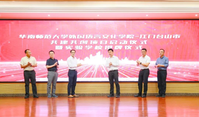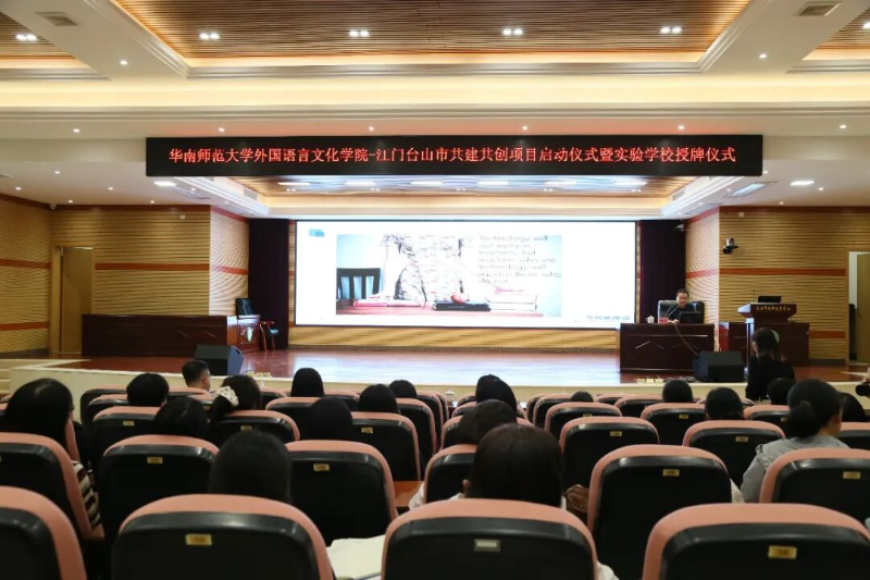 3月23日下午,华南师范大学外国语言文化学院与台山市共建共创项目启动仪式暨实验学校授牌仪式在台山市教师发展中心举行。双方共同启动“数字化赋能英语教育城乡一体化高质量发展”项目,标志着高校优质教育资源与地方教育需求实现深度对接,为县域英语教育数字化转型探索新路径。