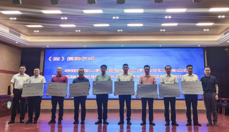 启动仪式上,华南师范大学外国语言文化学院向台山市15所学校授予“实验学校”牌匾,并捐赠数字化教学平台及资源。据了解,该平台贴合中考听说考试要求,依托人工智能技术实现听说教学智能评测与全场景覆盖,可帮助教师精准掌握学情、开展个性化教学。