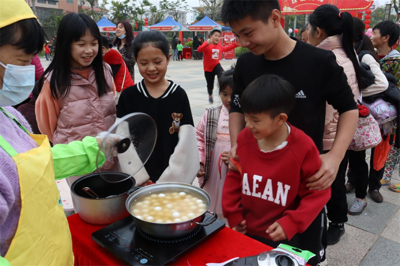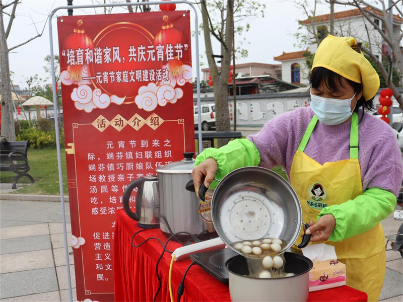 活动现场,除了趣味十足的小游戏,端芬镇巧厨娘们还为参与活动的广大群众送上一个个滚圆白胖的汤圆,志愿者则为大家送上丰富的小吃,并送上节日祝福!大家品尝着汤圆连连称赞:“皮薄而滑、馅料实足、香甜可口,这个元宵节过得十分有意义”。