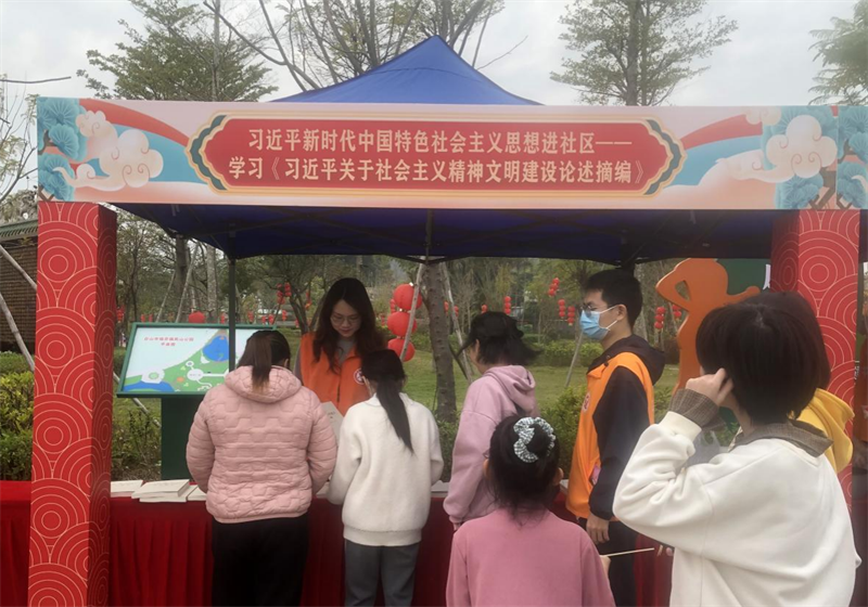 除了玩游戏、品美食,活动现场还设置宣讲区,开展习近平新时代中国特色社会主义思想进社区活动,与广大群众一起学习《习近平关于社会主义精神文明建设论述摘编》,丰富和拓展群众精神文明建设。