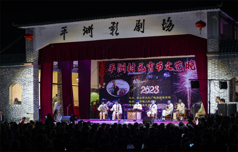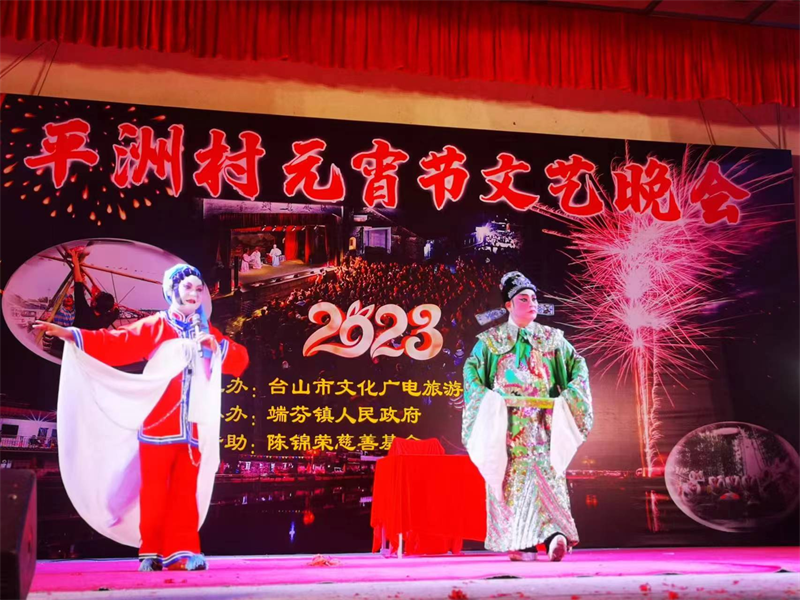 放完新丁炮、烟花后大家就来到露天影剧场看大戏,鼓乐声声,粤韵悠扬,预示新的一年吉祥、美好的开始。台上的演员表演得认真,台下的观众也看得高兴,欢声笑语,其乐融融,欢度元宵佳节。