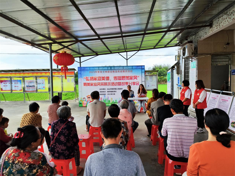 活动邀请了2022年台山市“最美家庭”、2022年端芬镇“最美家庭”杜子行家庭到现场进行分享,通过面对面交流,分享他们身上的幸福故事。他们一家分别从家庭和睦、团结邻里、勤劳致富、回报社会等多个方面讲述了家风故事,与大家共同分享了生活中的幸福点滴,用生动质朴的语言讲述了平凡却温暖的家庭故事,让美德在家庭中生根、在亲情中升华。
