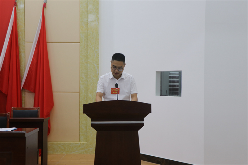 大会闭幕后举行向宪法宣誓仪式,由镇党委书记张明锋监誓,新当选副镇长卫慧包右手举拳庄严宣誓。