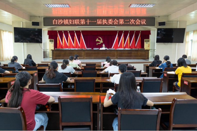 9月25日,白沙镇妇联第十一届执行委员会第二次会议在镇府礼堂召开,白沙镇妇联第十一届全体执委参加会议。