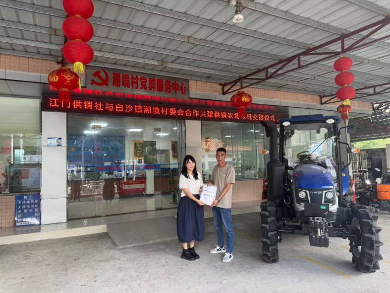 为激活本土农业资源,推动粮食产业高质量发展,近日,江门市供销社与白沙镇潮境村合作完成共建供销农场农机交接仪式,标志着双方合作共建的“供销农场”生产示范基地正式启动运行。