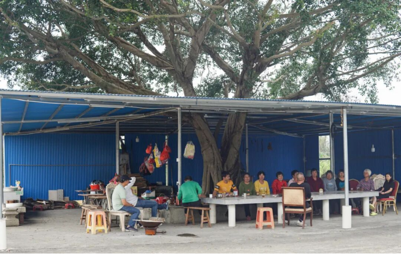 “去年重阳节办敬老活动,突然下雨,连个躲雨的地方都没有。”岗美村党支部书记余子斌回忆说。活动结束后,有村民提议给文化楼前搭个固定的雨棚。棚子建好后,大家说:“既然搭好了,不如煮一餐庆祝一下?”没想到,这顿“庆祝饭”一吃便再未停下,渐渐演变成了村民自发组织的“集体食堂”。