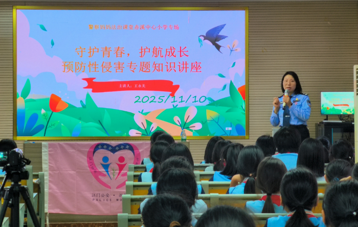 自台山市公安局“护苗女警团”预防性侵害专题宣讲启动以来,一缕温暖而坚定的法治清风吹遍了台山校园的各个角落。在前阶段扎实工作的基础上,女警团步履不停、持续深耕,将防护的种子播撒至更广袤天地——近期,宣讲范围进一步扩展至台山排球运动学校、培英中学、市联合职业技术学校、台城及乡镇小学等多所学校。自10月底活动全面铺开以来,女警团专题宣讲活动已累计覆盖师生超过1万人次,构筑一道坚实的青春防护网。