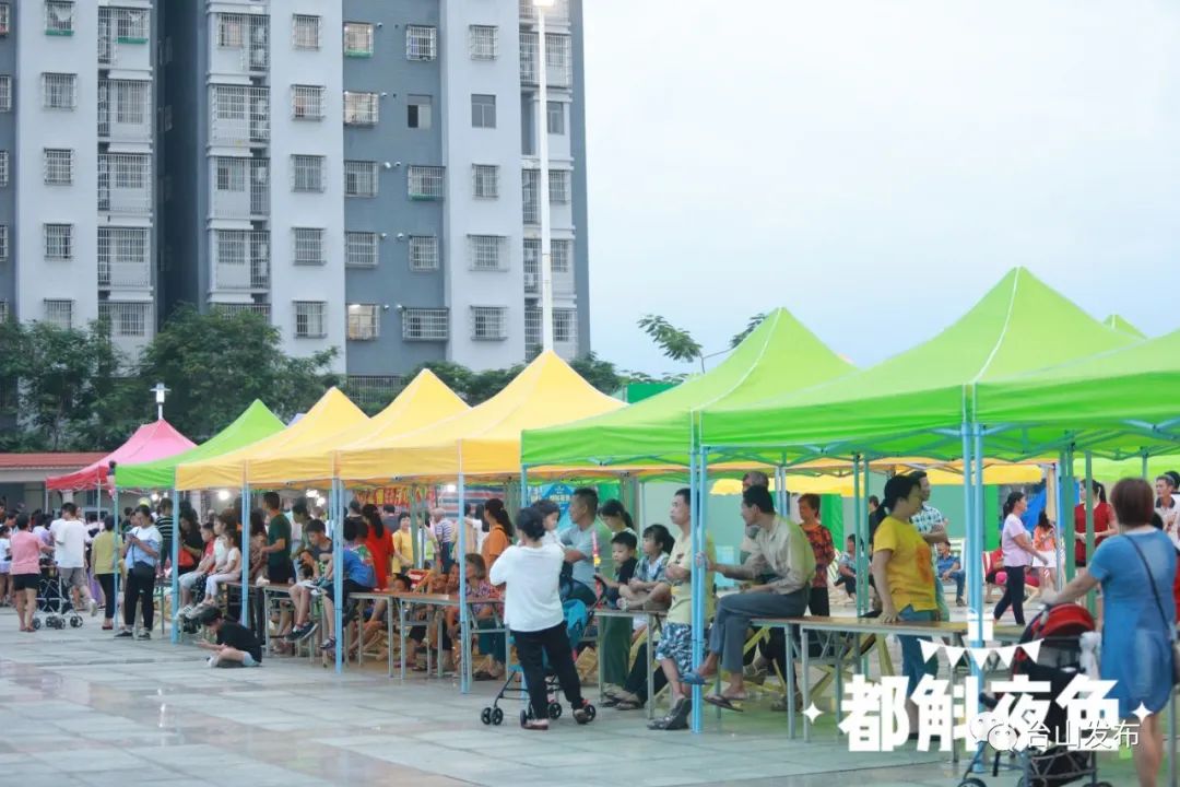 “都斛夜色”市集位于都斛镇文化广场,集合了灯光观赏区、商品区、美食区、儿童游乐区等功能板块,是一个包含“吃、游、购、娱、体、展、演”在内的多元夜间消费市场,全场46个摊位涵盖了百货、美食、服饰、儿童娱乐等多种业态。