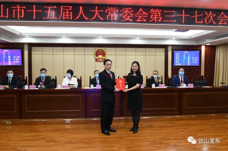 会议还审议通过了《台山市人民代表大会常务委员会规范性文件备案审查办法》,审议通过个别江门市和台山市人大代表辞职事项。会议补选彭大荣为江门市十五届人大代表,决定任命邝世铭为台山市人民政府副市长。