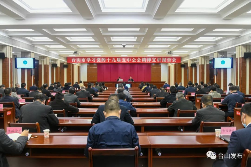 12月4日下午,台山市委理论学习中心组(扩大)专题报告会召开,邀请省委宣讲团成员、省社科院党组成员、副院长赵细康作《乘势而上开启全面建设社会主义现代化国家新征程》专题辅导报告。市四套领导班子成员,各镇(街)、市有关单位及上级驻我市有关单位的主要负责同志参加学习。
