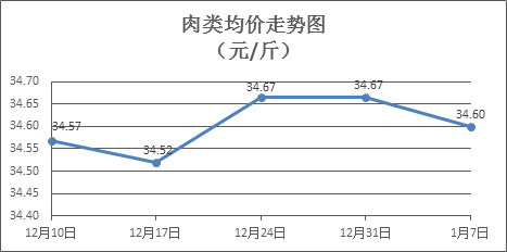 肉类商品价格窄幅盘整。上周所监测的8种肉类商品价格波动情况为5涨3跌,综合零售均价为34.60元/斤,环比下降0.19%。其中:排骨、精瘦肉、有皮上肉、牛肉、带骨羊肉零售均价分别为每斤29.16元、18.55元、14.41元、53.58元、44.90元,环比分别上涨0.90%、上涨0.71%、上涨0.84%、下降1.27%、上涨0.04%。