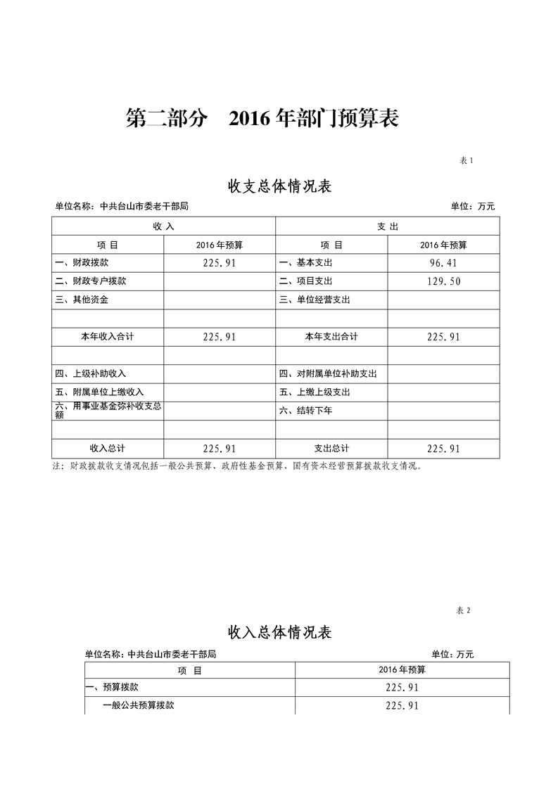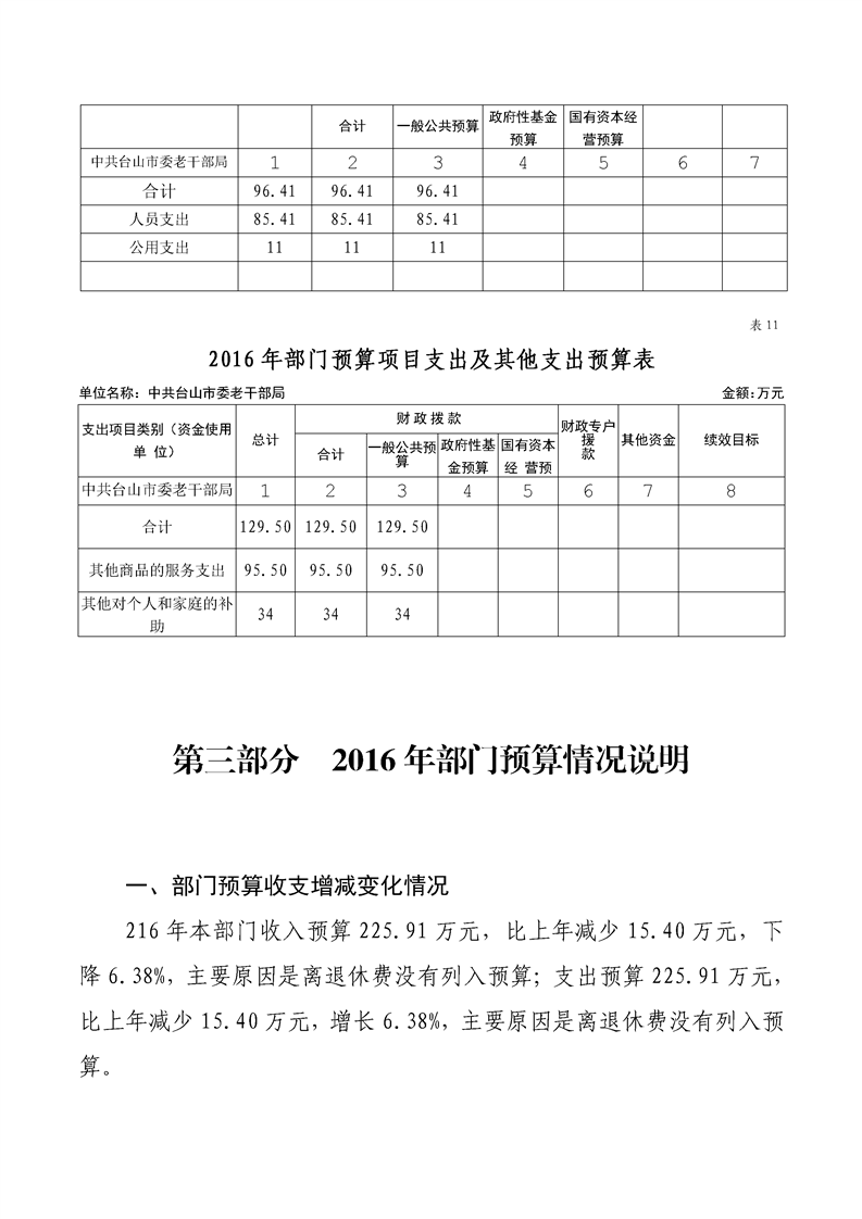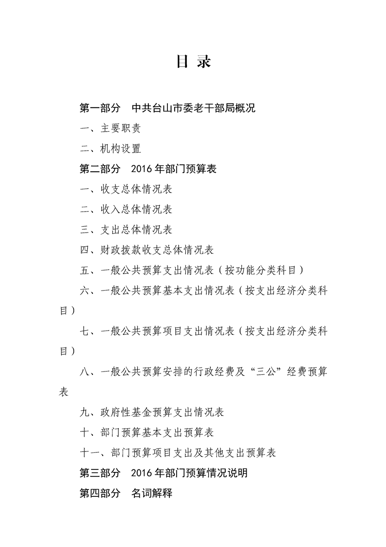 2016年老干部局部门预算公开