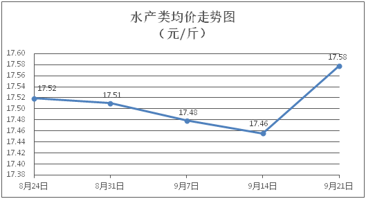 据本市21家农贸市场监测数据显示,上周(9月15日至9月21日)市场上各类“菜篮子”商品供应充足,所监测的7大类“菜篮子”商品价格环比总体表现为4涨2跌1平。其中:粮油类商品价格稳中略涨,肉禽类、蔬菜类商品价格总体略降,蛋类、水果类、水产类商品价格有所回升。