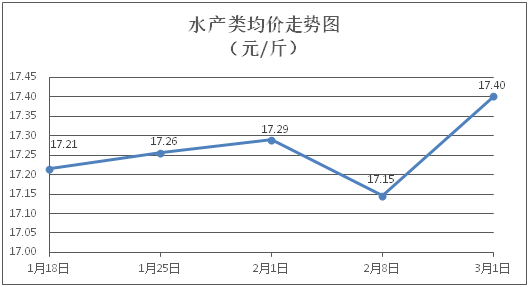 水产类商品价格有所上涨。所监测的水产商品价格波动情况为4涨4跌1平,综合均价为每斤17.40元,环比上涨1.49%。其中:鲫鱼、鳙鱼、罗非鱼、基围虾零售均价分别为每斤13.96元、11.08元、8.96元、29.48元,环比分别下降0.21%、上涨2.97%、上涨2.05%、上涨5.29%。