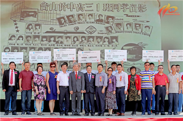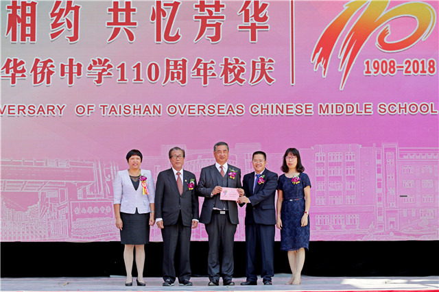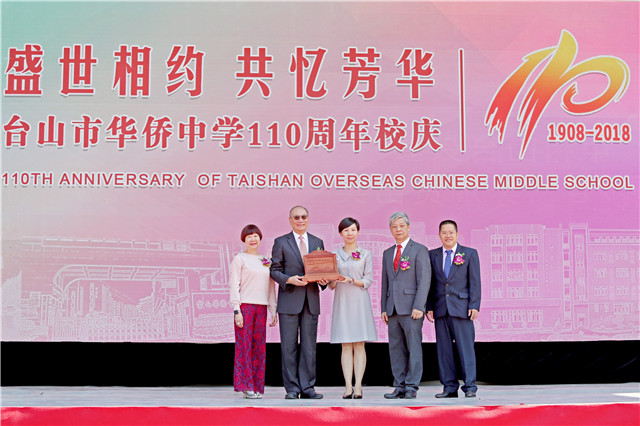 10月28日上午,台山侨中在校园新建体育场举行“盛世相约,共忆芳华”110周年校庆活动。原江门市人大常委会副主任叶一鸣,台山市人大常委会副主任郑大有、副市长张慧琳、政协副主席陈翠芹、市委市府办副主任胡洁明、教育局长李石凑等领导,香港台山商会理事长雷庭荪和监事长陈中伟、李伯荣先生生前好友甘炳棠、台山侨中校友会会长谢建华等嘉宾,友好学校校长、台山侨中海内外校友以及在校师生欢聚一堂。