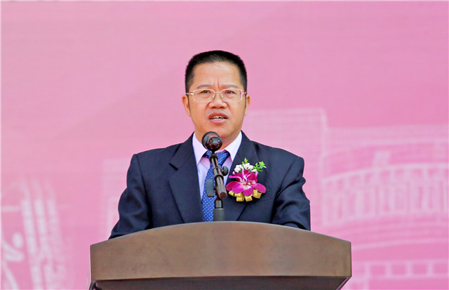 侨中校长容晓文在致欢迎辞中对出席活动的领导、嘉宾、校友表示欢迎,对支持台山侨中发展的市委、市政府表示感谢,对支持侨中建设的陈炳新家族、李星衢父子、香港台山商会等善长仁翁和热心团体表示感恩,对历届校友对母校的慷慨资助表示感激。随后回顾了学校百年历史,并用“天行健,君子以自强不息;地势坤,君子以厚德载物”勉励同学们续写侨中辉煌新篇章。