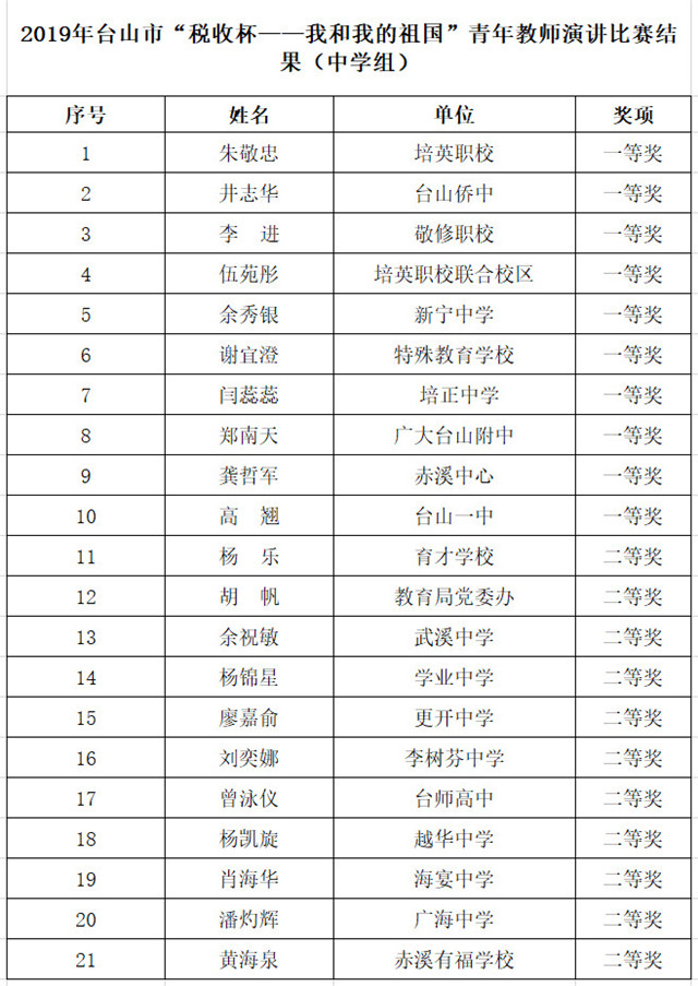 活动中,还进行“税收杯—我和我的祖国”青年教师(中学组)演讲比赛决赛,21名青年教师围绕演讲主题,阐述对祖国的热爱,畅想新时代。