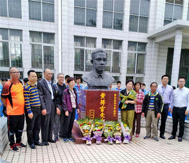 近日,在市教育局党组成员、纪检组长容惠汉和白沙镇政府领导陪同下,萃英中学创办人黄拜言先生的孙女黄萃英等旅美亲属回校参观指导,拜谒了黄拜言先生铜像,并向铜像献花。