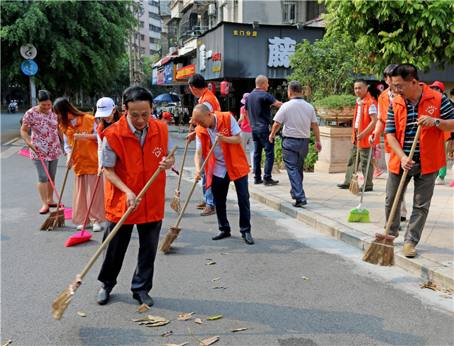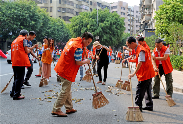清扫活动分4路进行,教育局副局长吴振文带领股室干部负责教育局门口到台城街道办路口红绿灯(左侧),台师高级中学师生负责教育局门口到台城街道办路口红绿灯(右侧),台山一中师生负责教育局门口至影剧院门口,台城二小教师负责教育局门口至建设银行门口。大家身穿义工服,手持工具认真打扫,经过之处,干干净净。