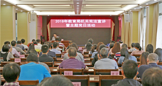 为增强宪法意识,维护宪法权威,10月17日,市教育局在四楼会议室举行宪法宣讲暨主题党日活动,邀请市宪法宣讲团成员、市委党校教研办主任黄亦贤为全体干部上辅导课,解读2018年《中华人民共和国宪法修正案》。
