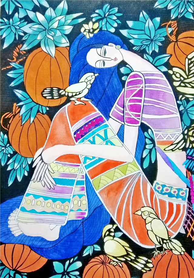 一等奖作品《金秋的使者》绘画林雯慧▲