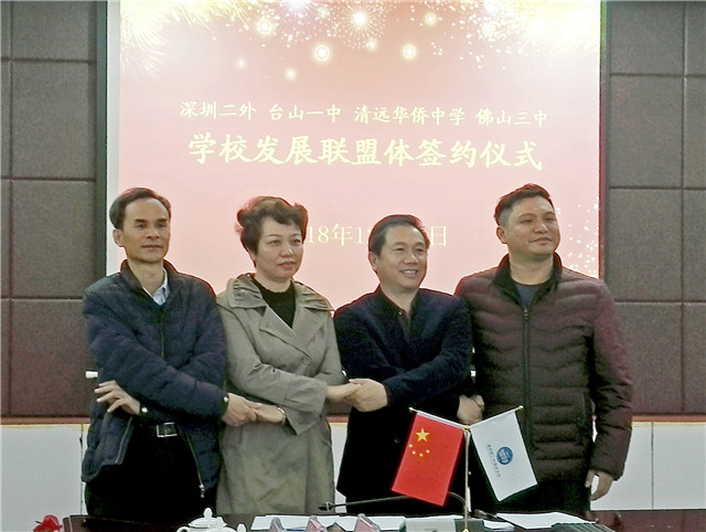 为了充分发挥各校优势,加强校际间的合作共赢,近日,台山一中与深圳二外、清远华侨中学、佛山三中在深圳二外签署《学校发展新联盟体公约》,启动育人模式、走班制管理模式、校本课程开发与教师专业发展路径等方面的共同探索。