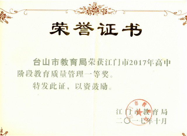 创造高考本科上线人数“十一连增”的好成绩,三年来有5位同学考入清华北大。中考成绩增幅稳居江门首位,2018年新宁中学综合排名登上江门榜首。教育局先后获江门市2017年教育质量管理一等奖和2018年教育质量管理创新奖。我市“教研联盟”改革举措在江门市基础教育教学工作总结交流会作经验介绍。