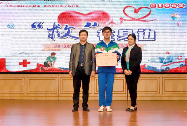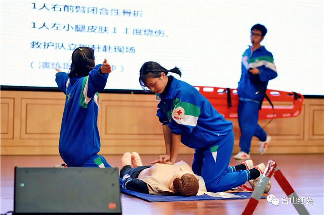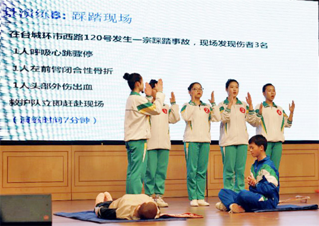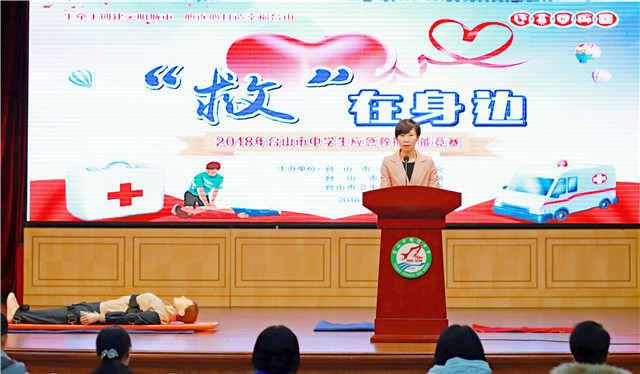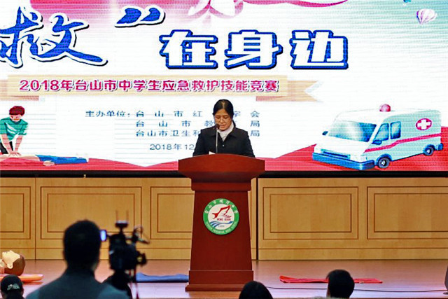 本次比赛设场景演练(交通事故现场、踩踏现场和地震灾害现场)和理论知识问答两个环节,11所高(职)中学校组队参赛。经过比拼,鹏权中学获得一等奖,敬修职校、台师高级中学获得二等奖,台山一中、培英职校、培正中学获得三等奖;广东厨艺技工学校、台山侨中、培英职校联合校区、更开中学、大江实验中学获得优秀组织奖。市教育局党组成员容惠汉等为获奖者颁奖。