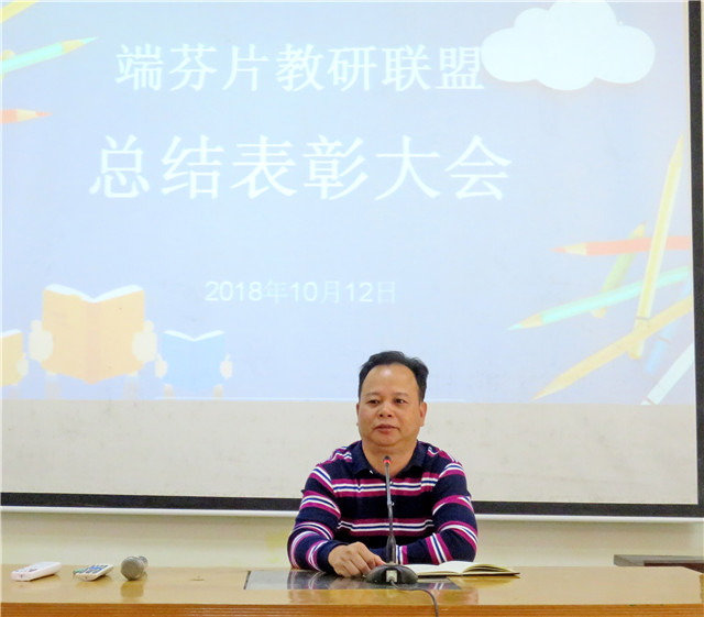 10月12日,端芬中心教研联盟在端芬镇中心学校学术报告厅召开总结表彰大会。市教育局党组成员容惠汉、教研室副主任梁海彤、教研员蔡惠芳,各盟校校长、副校长、教导主任、科组长及获奖教师参加。