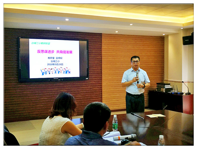 9月28日,台城二小教研联盟学校校长及抓教学领导齐聚台城二小学术交流中心举行教研联盟工作会议。市教育局教研室副主任梁海彤和教研员雷炳权到场指导。