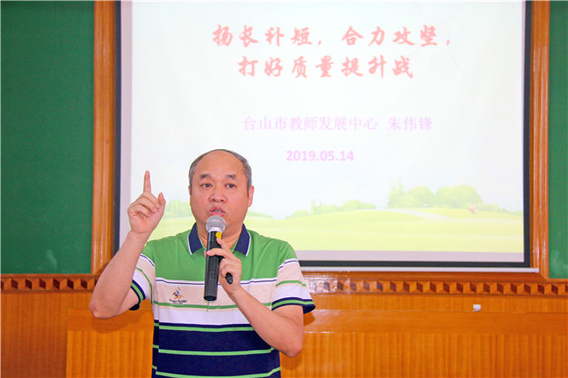 教师发展中心小学教研部数学教研员朱伟锋做《扬长补短,合力攻坚,打好质量提升战》讲座,从五个方面指导如何有效开展总复习:1.打好基础、紧靠教材;2.专题专练、各个击破;3.归纳总结、整体提高;4.鼓励表扬、培养兴趣;5.科学指导、充分准备。