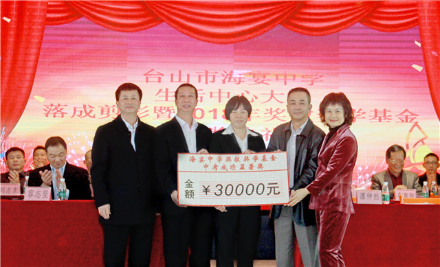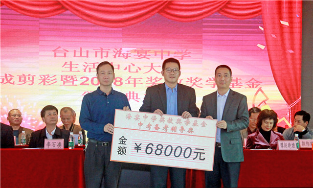 海宴中学奖教奖学基金于2002年由谭仲然先生伉俪牵头设立,2009年起基金增至每年10万元,10多年来共发出奖金近150万元。今年设奖项6个,包括中考成绩显著奖、中考备考奖、优秀班主任奖、优秀教育工作者和优秀教师奖、中考精英奖、学期考试成绩优秀奖,奖励师生200多名,颁发奖金共20.1万元。为表彰一贯以来为海宴中学作出巨大贡献的校友和社会热心人士,基金会特设“杰出贡献奖”,由教育局和海宴镇政府联合颁发。