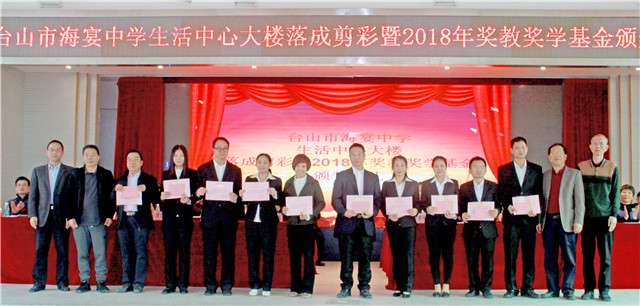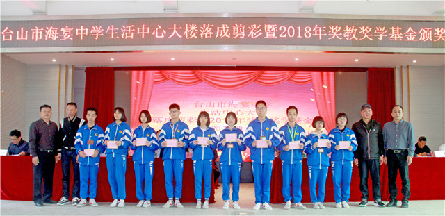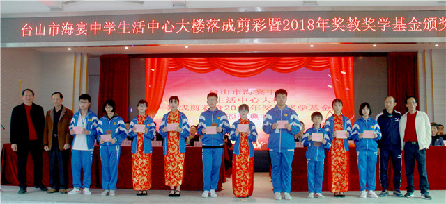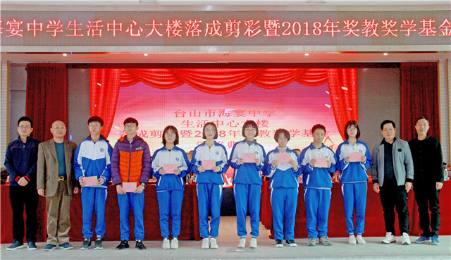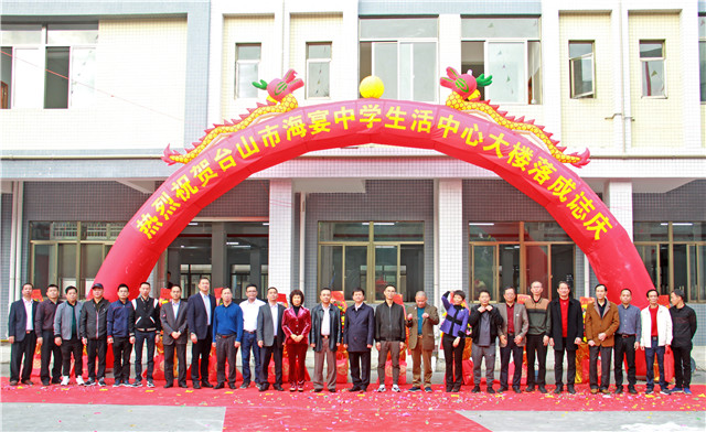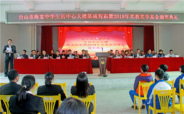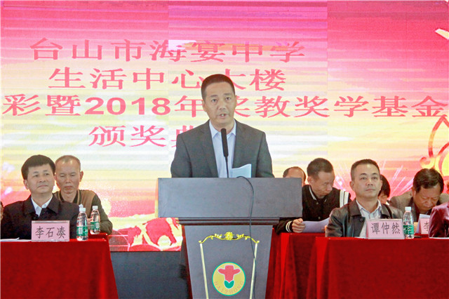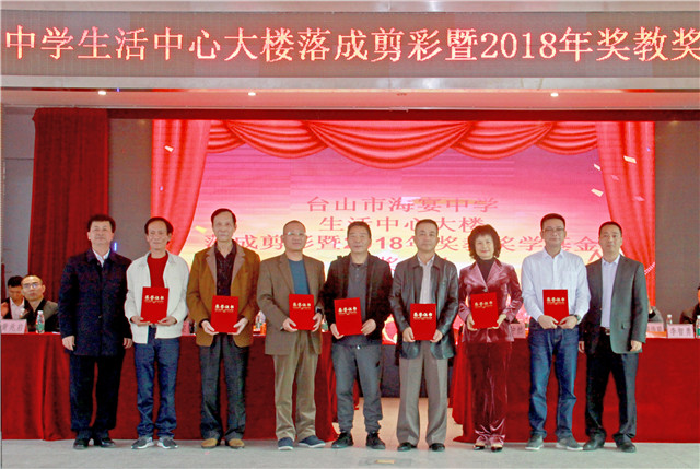 1月5日,海宴中学举行生活中心大楼剪彩仪式暨2018年奖教奖学基金颁奖典礼。市教育局党组书记、局长李石凑,海宴镇党委书记李智勇,海宴中学校友会会长、深圳得时集团股份有限公司董事长谭仲然为代表的校友,社会热心人士以及全校师生等欢聚一堂。