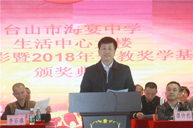李石凑在讲话中指出,海宴中学是全市农村中学的佼佼者,是台山教育界中的“黄埔军校”,每一年都在创造新辉煌。他勉励全校师生继续发扬海中精神,勤教乐教,勤学乐学,以最好的成绩回报社会。