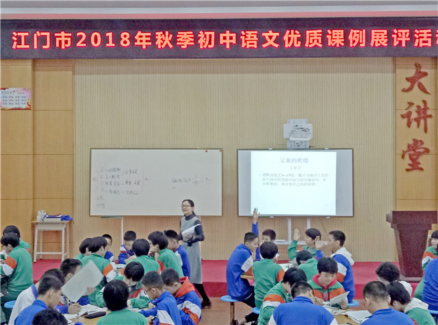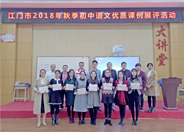 12月19—20日,江门市2018年秋季初中语文优质课例展评活动在鹤山市沙坪实验中学举行。代表我市参赛的广州大学台山附属中学李敏儿老师展示课例《猫》,抓住猫的性格特点引导学生,激发起学生学习兴趣,并以研究性阅读突出学生的主体地位,使学生享有自由发展空间,课堂充满生命活力,赢得了评委以及观摩教师的一致好评,获评一等奖。