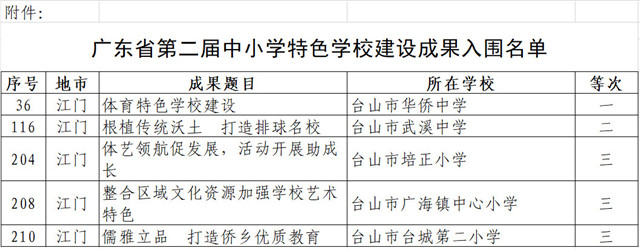 广东省第二届中小学特色学校建设成果入围名单(台山部分)