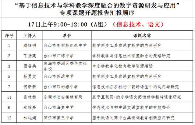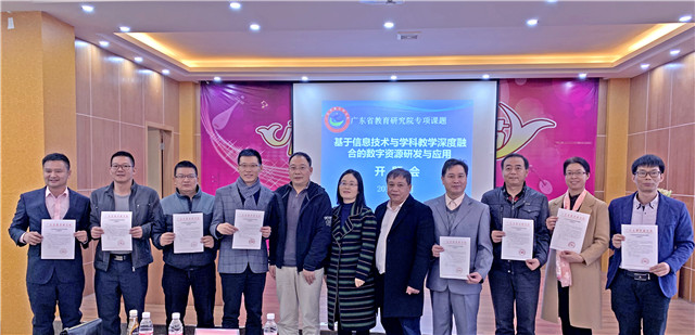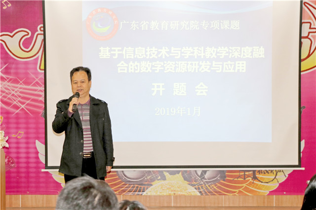 1月17日,由广东省教育研究院主办的“基于信息技术与学科教学深度融合的数字资源研发与应用”专项课题开题会在李树芬中学举行。省教育研究院教研员席春玲、始兴县教研室主任涂立龙、广州市天河区教研员刘永东、江门市信息技术教研员林雪峰、江门市小学数学教研员丁玉华5位专家,市教育局党组成员容惠汉、教师发展中心主任刘一柱以及来自全省各地参与本次课题研究会的30所学校的课题主持人和参研人员等90多人参加会议。其中我市有5所,包括李树芬中学、广海中学、任远中学、邓树椿中学和海宴中学。