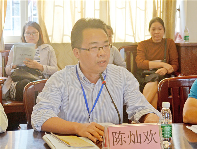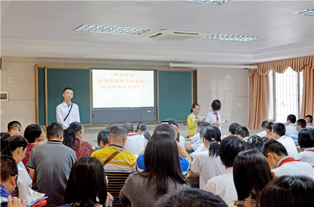 活动的第二部分是课题成果展示与交流会,由分管初中教学教研工作的黄振克主持。会上,更开中学校长陈灿欢连用三个“激动”肯定“微课式导学案教学”,热切期待微课教学助力学科教学质量提升,同时表示将以本次课题成果展示活动为契机,在全校掀起课题研究新热潮。