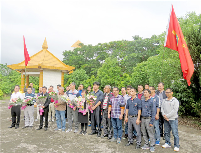 由台山解放后首任县长谢永宽题词的纪念碑上“革命英烈永垂不朽”八个镏金大字,耀眼无比,苍劲有力。党员干部在纪念碑前列成方队,伴随着庄严肃穆的乐曲追思默哀,深切缅怀革命先烈可歌可泣的不朽功绩,向烈士们表达无限的哀思和崇高的敬意。党员代表向英烈敬献鲜花。