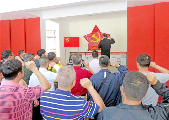 接着移步纪念馆,面向鲜红党旗,高举右拳,发出了铮铮誓言:“我志愿加入中国共产党,拥护党的纲领,遵守党的章程,履行党员义务,执行党的决定,严守党的纪律,保守党的秘密,对党忠诚,积极工作,为共产主义奋斗终身,随时准备为党和人民牺牲一切,永不叛党。”铿锵有力的誓言响彻纪念馆,催人奋进。