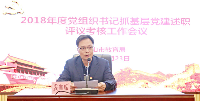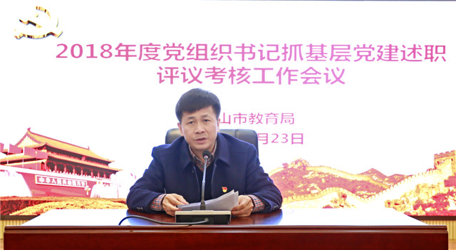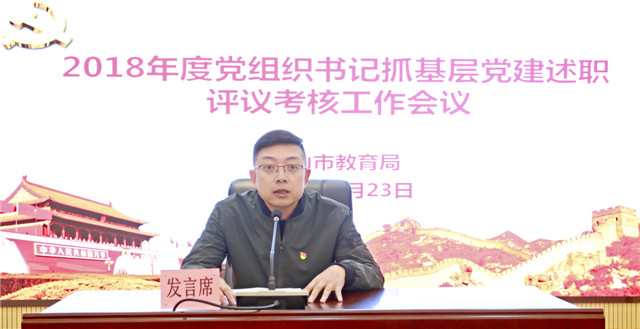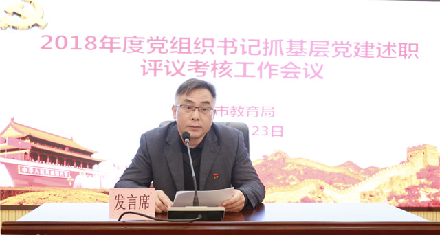 1月23日上午,市教育局召开党组织书记抓基层党建工作述职评议考核工作会议,教育局党组书记、局长李石凑,党组成员李育恒、黄伟湛以及60所基层学校党组织书记参加会议。