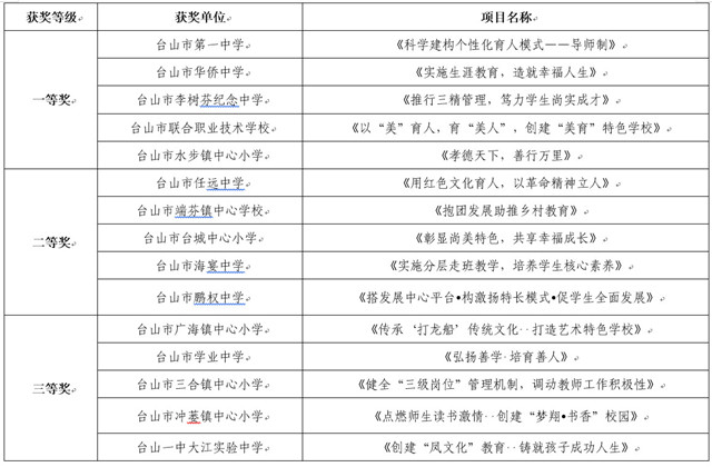 2018年台山市第二届“学校管理创新奖”评选结果