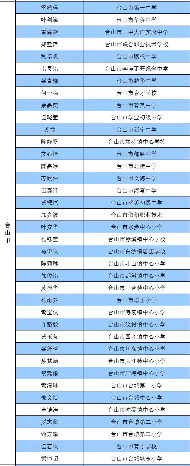 近日,江门市教育局公布2018—2019学年度江门市中小学优秀学生评选结果,我市台山市第一中学雷咏瑶等38名学生上榜。