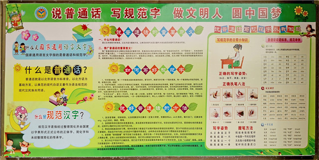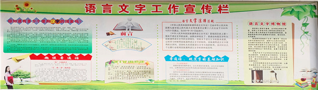 11月1日至16日,三个工作组深入各校进行检查,共检查中学(含职中)29所,九年一贯制学校9所,小学52所。从检查情况来看,大部分学校师生能使用规范的语言文字,开展与语言文字工作相关的活动较多,尤其是推普周活动有方案、有记录、有总结,校园设置宣传牌(栏),相关档案资料比较齐、内容充实。准备工作做得比较好的学校有台城中心小学、李星衢纪念学校、大江镇中心小学、广海镇中心小学、台山侨中、海宴中学、新宁中学。